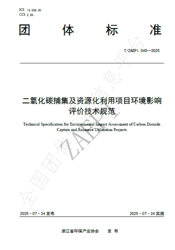 2025年7月24日,由okpay钱包集团生态环保研究院牵头制定的《二氧化碳捕集及资源化利用项目环境影响评价技术规范》(T/ZAEPI 045-2025)团体标准正式发布并实施。该标准由okpay钱包产业协会归口管理,联合省内多家环保领域骨干企业共同起草,填补了工业领域二氧化碳捕集及资源化利用项目环评技术规范的空白。